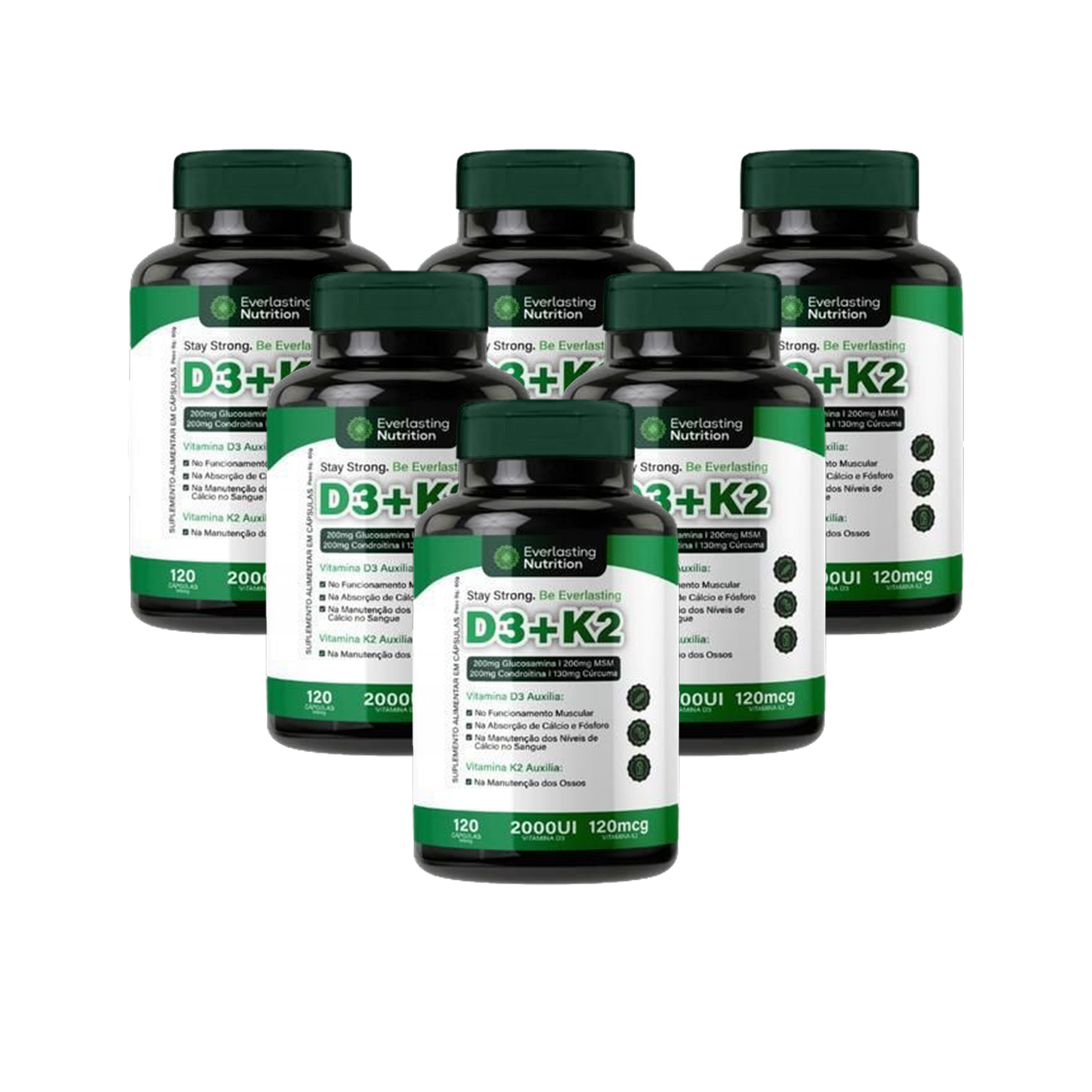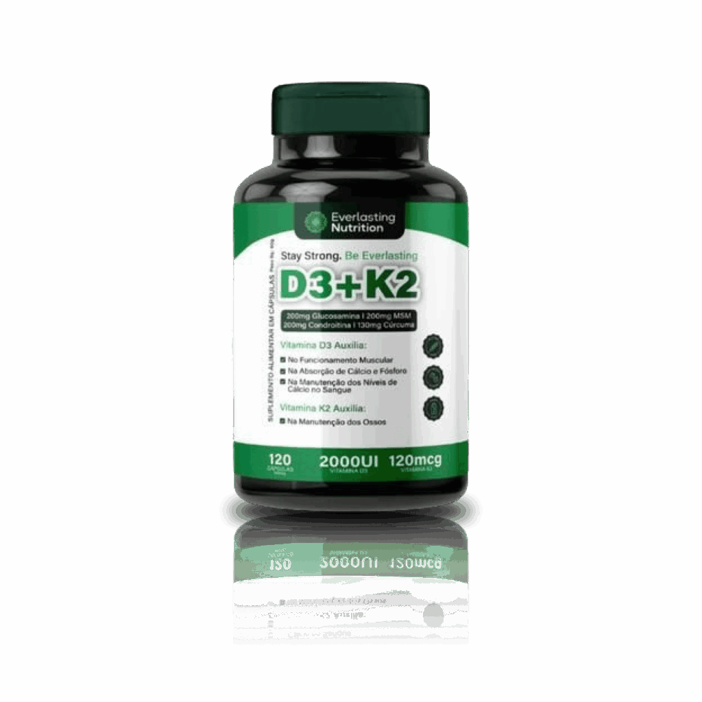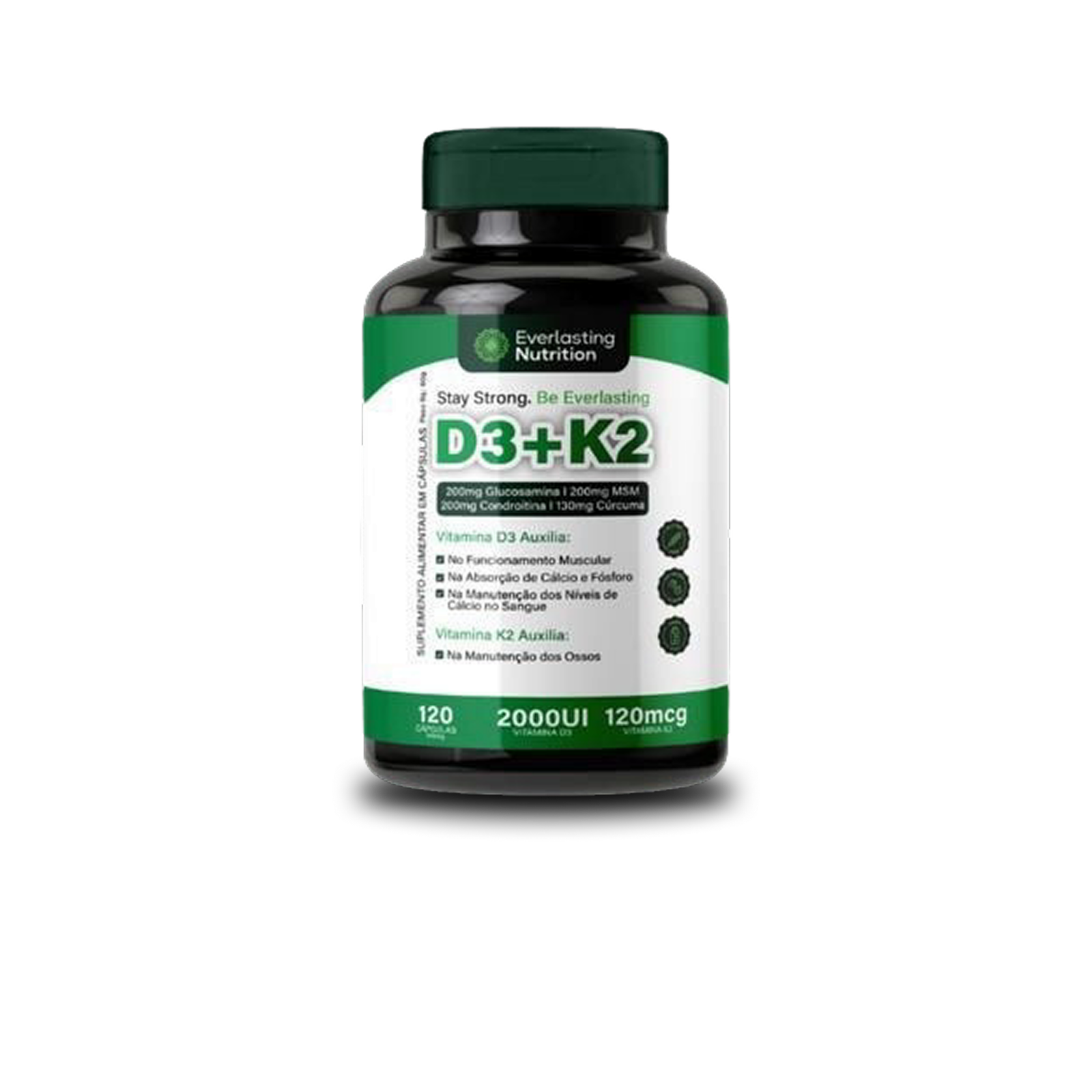 Auxilie a melhorar o bem-estar de suas articulações com o suplemento D3 + K2, desenvolvido para proporcionar uma abordagem inovadora. Com uma fórmula única de 7 ativos, este complemento nutre suas articulações, enquanto auxilia a fortalecer os ossos.   Fórmula InovadoraComplexo Articular D3 + K2 da Everlasting Nutrition combina ingredientes selecionados para auxiliar a maximizar sua eficácia. Essa fórmula atua de maneira sinérgica, proporcionando uma abordagem abrangente.