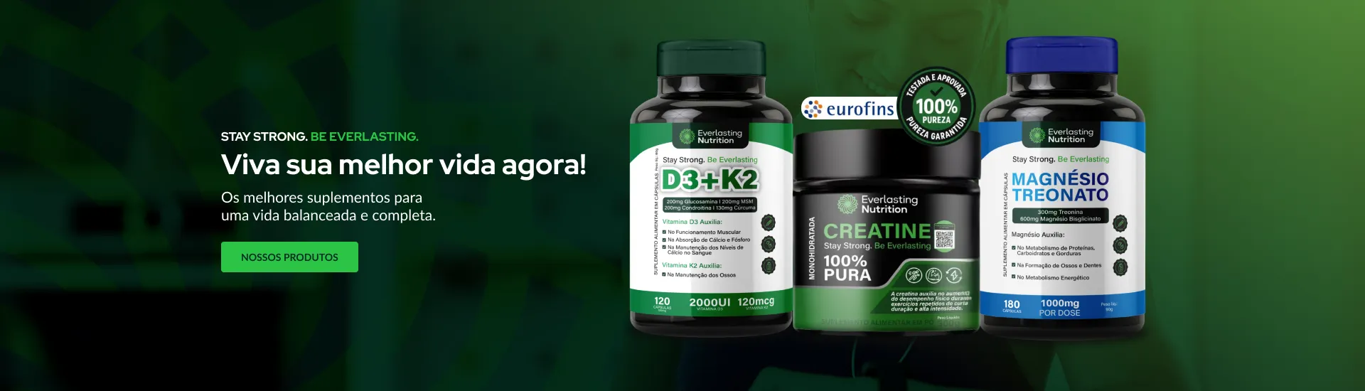 Independente da sua fase de vida ou dos seus objetivos, a Everlasting Nutrition está aqui para ser sua parceira, ajudando você a alcançar o seu melhor. Porque para nós, seu bem-estar é eterno.